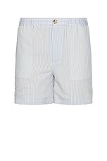 FRAME Blue Striped Shorts in Blue Stripe