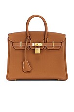 FWRD Renew Hermes Togo Birkin 25 Retourne Handbag in Gold