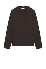 SIMKHAI Reynolds Long Sleeve Polo in Chocolate Melange