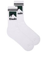 Rhude Striped Moonlight Socks in White, Navy, & Green