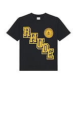 Rhude Collegiate Crest Tee in Vintage Black & Yellow