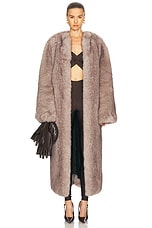 NOUR HAMMOUR Uma Drapey Shearling Coat in Brown Marble