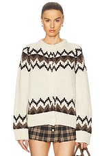 &Daughter Bansha Fairisle Crewneck Cardigan in Ecru, Brown & Dark Brown
