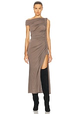 ALAÏA Ruched Midi Dress in Taupe