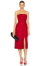 Alex Perry Strapless Stretch Crepe Midi Dress in Red