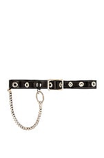 Alessandra Rich Leather Grommet and Chain Belt in Black