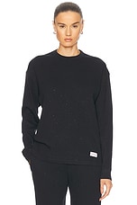 Alexander Wang Crystal Hotfix Waffle Crew Neck Long Sleeve Top in Black