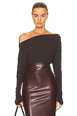 Enza Costa Cashmere Long Sleeve Off Shoulder Top in Dark Brown
