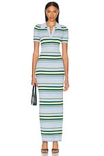 SIMKHAI Shelby Knit Polo Dress in Kelly Green Stripe