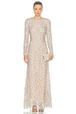 Oscar de la Renta Long Sleeve Gown in Silver