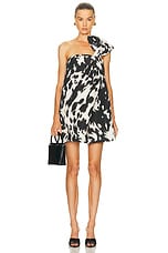 Oscar de la Renta One Shoulder Mini Dress in Ecru & Black