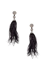 Oscar de la Renta Long Beaded Feather Earrings in Black