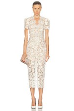 self-portrait Fine Lace Pearl Midi Dress in Cream