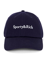 Sporty & Rich Serif Logo Hat in Dark Navy