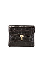 Toteme T-Lock Croco Embossed Cardholder in Dark Brown