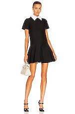 Valentino Embroidered Collar Short Sleeve Dress in Nero & Avorio