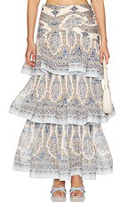 Zimmermann Tiered Pleated Skirt in Blue Paisley