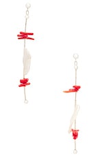 Zycloom Pedal Earrings in Sterling Silver, Freshwater Keshi Pearl, & Baby Coral