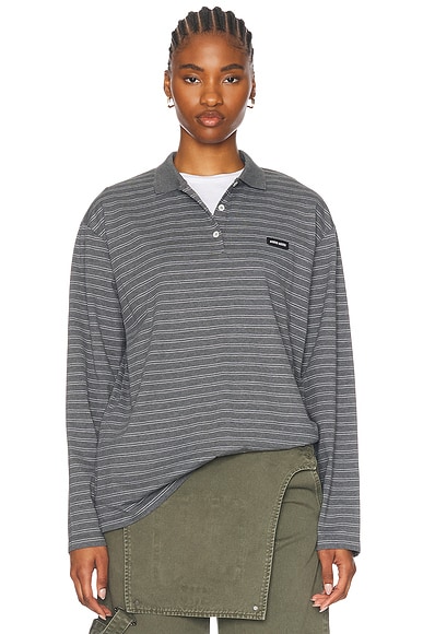 Miu Miu Long Sleeve Polo Top in Ardesia & Bianco