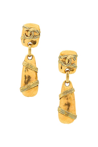 FWRD Renew Chanel Coco Mark Dangle Earrings in Gold