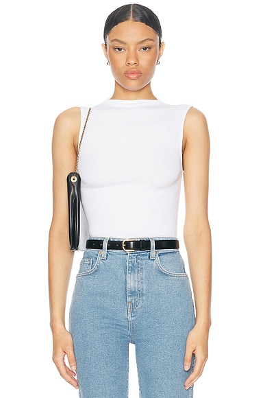 Enza Costa Silk Knit Rib Sleeveless Mockneck Top in White