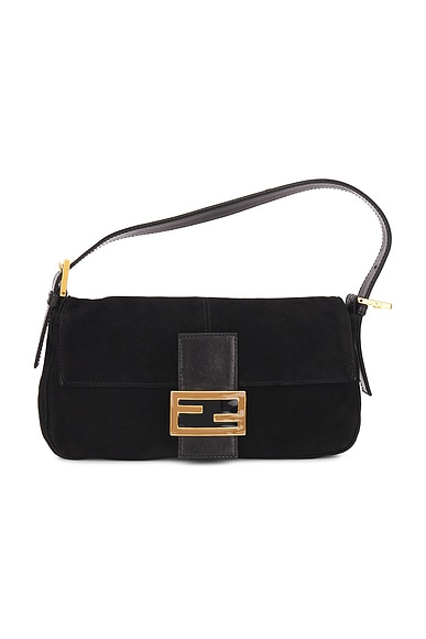 FWRD Renew Fendi Suede Mama Baguette Shoulder Bag in Black