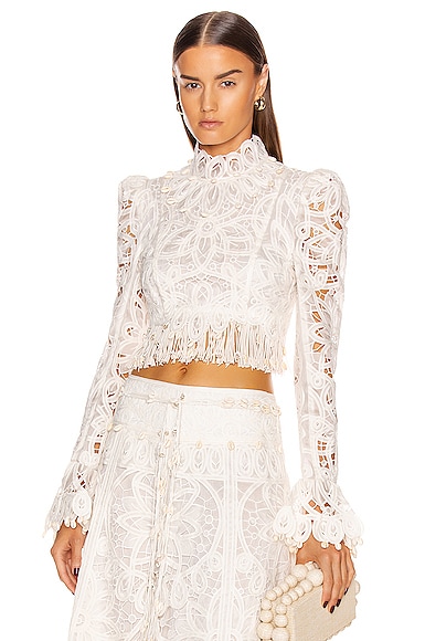 Zimmermann Wavelength Fringed Bodice in Ivory