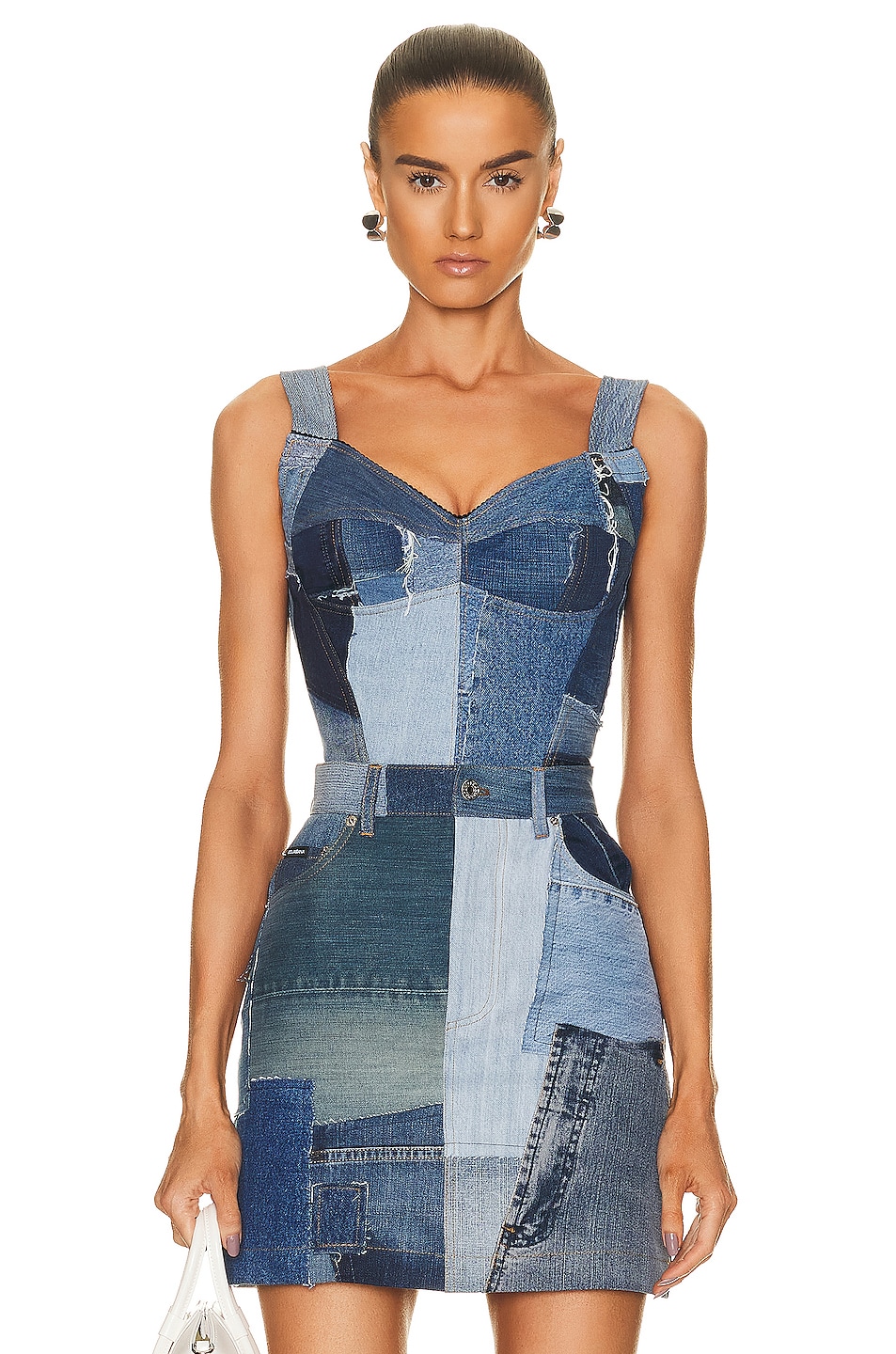 Patchwork Denim Bustier Top